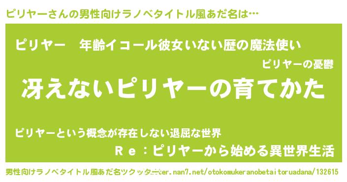 | 胡散臭い通販商品みたいなあだ名 | 『テレビで話題のアガリクス…その名も「ピリヤー」』 |