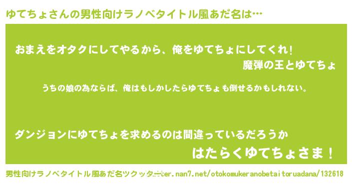 | 女子向けラノベタイトル風あだ名 | 『ゆてちょ伯爵の花嫁』 |