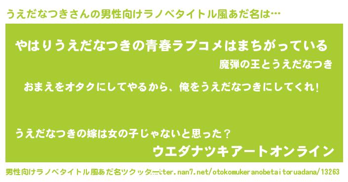 | 女子向けラノベタイトル風あだ名 | 『うえだなつき夫妻のなれそめ』 |