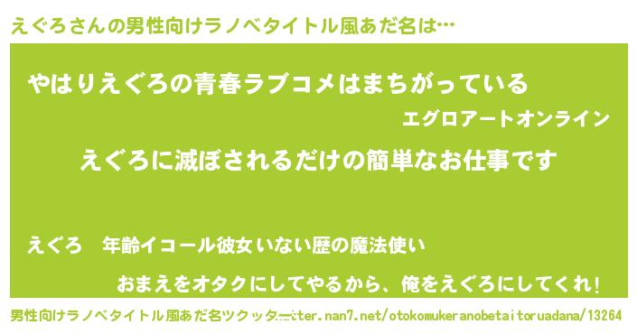 | 女子向けラノベタイトル風あだ名 | 『横柄えぐろと宰相陛下』『えぐろ恋絵巻』 |