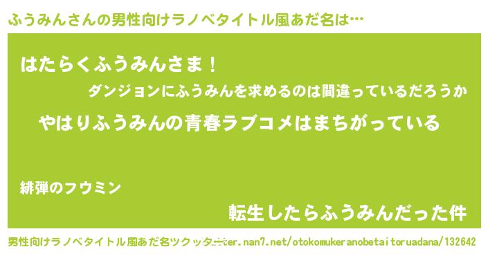 | 女子向けラノベタイトル風あだ名 | 『ふうみんの雑貨屋さん』 |