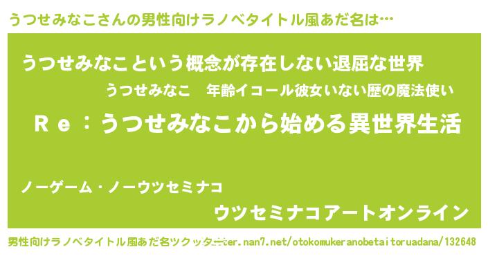 | ヘコむあだ名 | 『うつせみなこ(苦笑)』『うつにー』 |