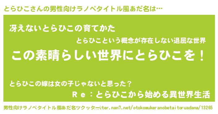 | 意味不明あだ名 | 『住所不定無職とらひこ(41歳)』 |