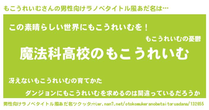 | 女子向けラノベタイトル風あだ名 | 『もこうれいむアンティーク』 |