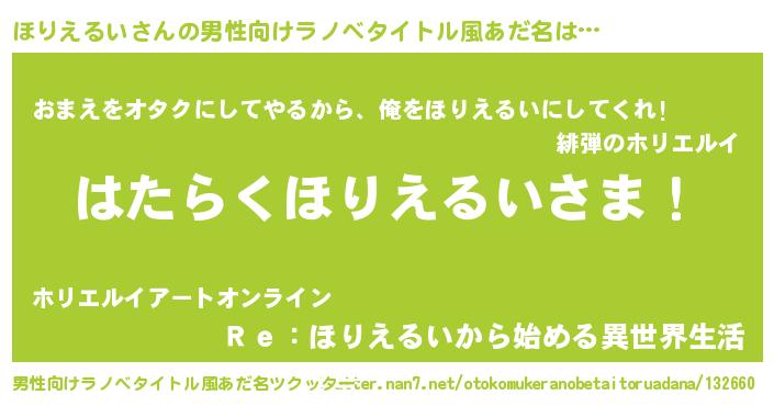 | ヒーロー風カッコイイあだ名 | 『正義の使者ほりえるい』『天弓騎士ホリ』 |