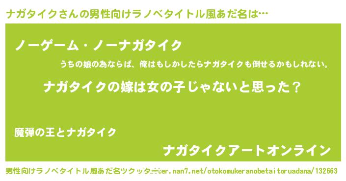 | 女子向けラノベタイトル風あだ名 | 『ナガタイク様がみてる』 |