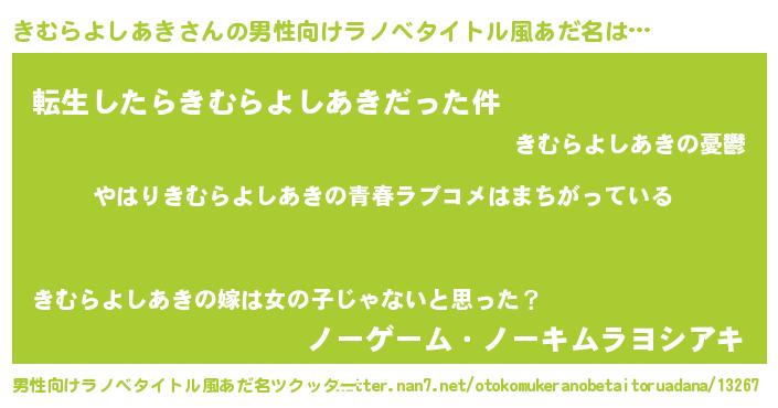 | 肩書あだ名 | 『きむらよしあき総理大臣』 |