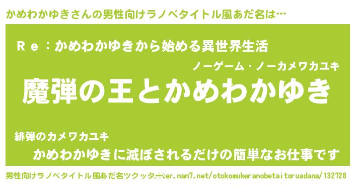 | 意味不明あだ名 | 『住所不定無職かめわかゆき(8歳)』 |