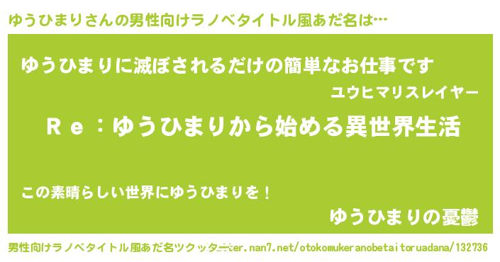 | ヘコむあだ名 | 『ゆうにー』『ゆうひまり(笑)』 |