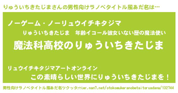 | 女子向けラノベタイトル風あだ名 | 『りゅういちきたじまなんてお断りですっ。』 |