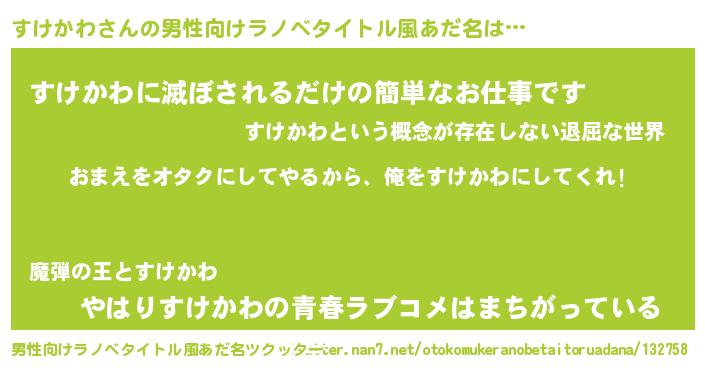 | 女子向けラノベタイトル風あだ名 | 『すけかわ夫妻のなれそめ』 |