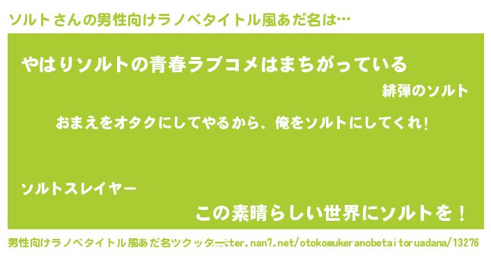 | 女子向けラノベタイトル風あだ名 | 『ソルト夫妻のなれそめ』 |