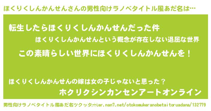 | 胡散臭い通販商品みたいなあだ名 | 『あなたにだけ特別に提供する100年もののヴィンテージワイン…その名も「ほくりくしんかんせん」』 |