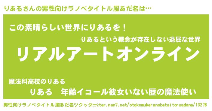 | 女子向けラノベタイトル風あだ名 | 『りある姫と円卓の騎士』 |