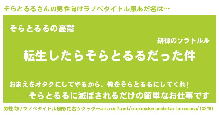 | 女子向けラノベタイトル風あだ名 | 『そらとるるの玉の輿計画!』 |