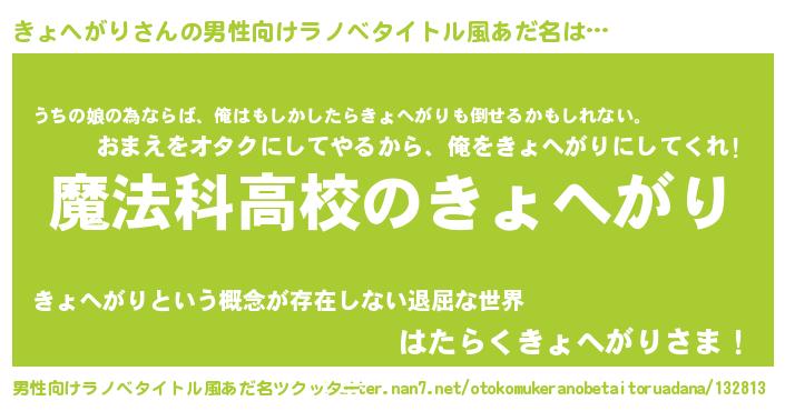 | 女子向けラノベタイトル風あだ名 | 『きょへがりアンティーク』 |