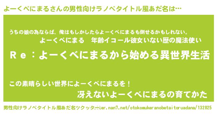 | 女子向けラノベタイトル風あだ名 | 『よーくべにまるストレイドッグス』 |