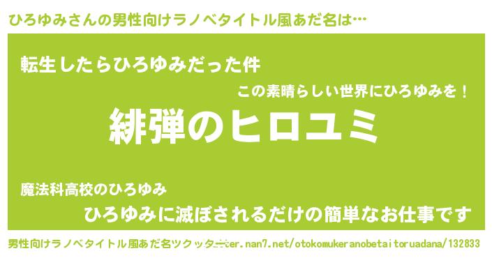 | ヒーロー風カッコイイあだ名 | 『仮面ヒロダー』『最強戦士ヒロユミ』 |