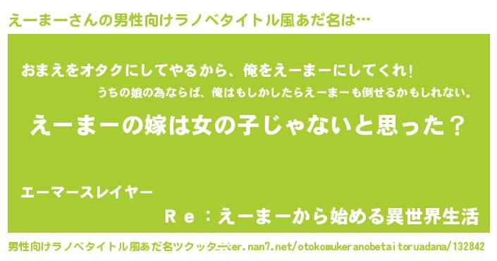 | 女子向けラノベタイトル風あだ名 | 『えーまー様がみてる』『闇のえーまー』 |