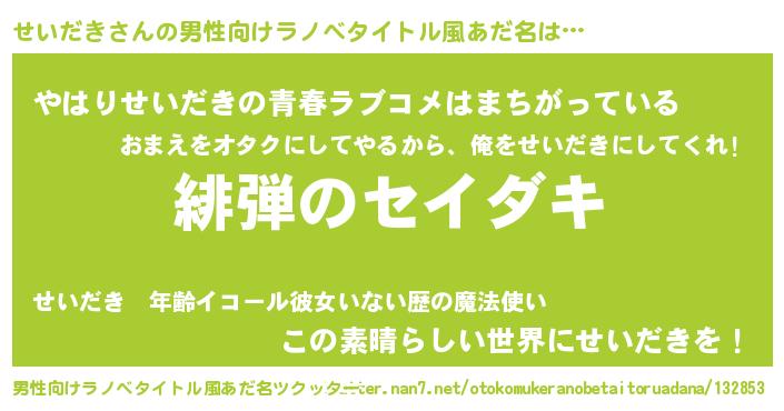 せいだきさんの男性向けラノベタイトル風あだ名をツクッター!