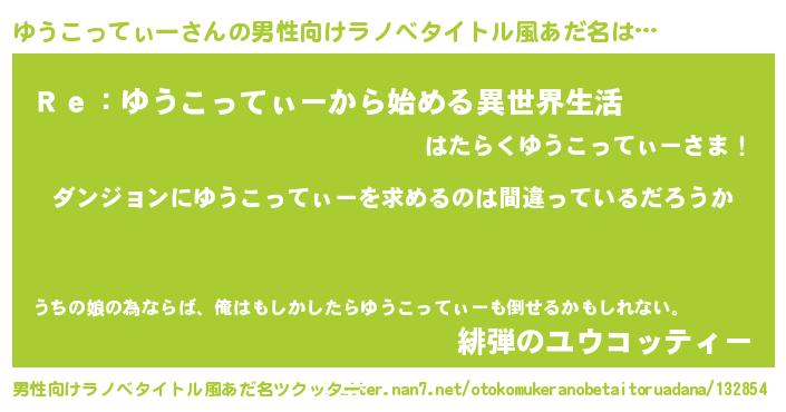 | 女子向けラノベタイトル風あだ名 | 『ゆうこってぃーは平凡を望む』 |