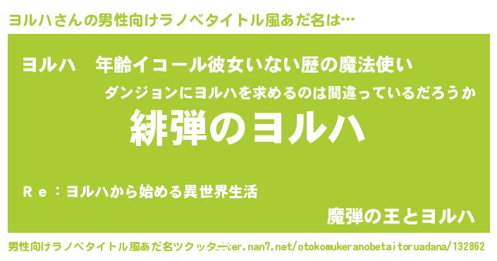 | ヘコむあだ名 | 『ヨルお』『豆乳』『ヨルハ(苦笑)』 |