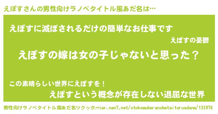 | 女子向けラノベタイトル風あだ名 | 『えぽすの卵を拾いまして』 |