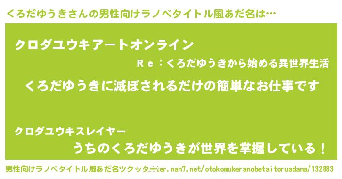 | 胡散臭い通販商品みたいなあだ名 | 『モテモテ間違いなし霊験あらたかなお札…その名も「くろだゆうき」』 |