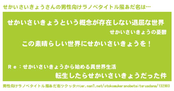 | 意味不明あだ名 | 『住所不定無職せかいさいきょう(98歳)』 |