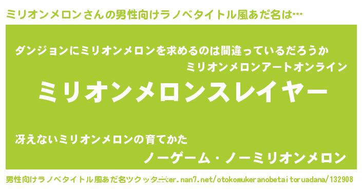 | 胡散臭い通販商品みたいなあだ名 | 『信頼と実績のサプリメント…その名も「ミリオンメロン」』 |