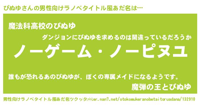 | ヒーロー風カッコイイあだ名 | 『慈愛の使者ぴぬゆ』『究極戦士ピヌユ』 |