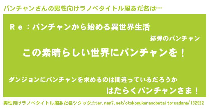 | 意味不明あだ名 | 『住所不定無職バンチャン(13歳)』 |