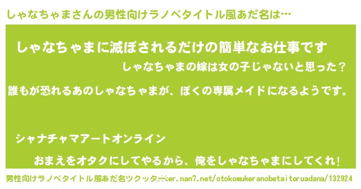 | 伝説のあだ名 | 『古文書に記された吟遊詩人しゃなちゃま』 |
