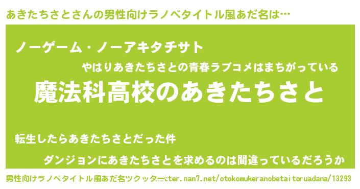 | 女子向けラノベタイトル風あだ名 | 『あきたちさとアンティーク』 |