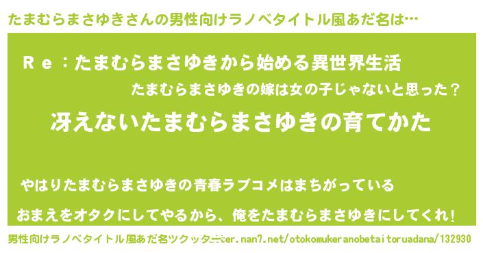 | 意味不明あだ名 | 『自称たまむらまさゆき』 |