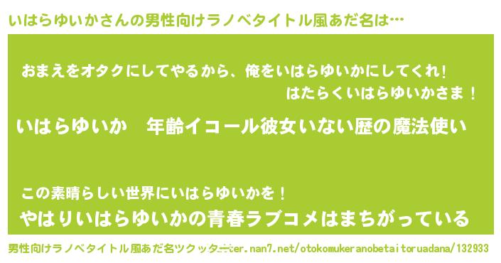| 胡散臭い通販商品みたいなあだ名 | 『モンドセレクションを受賞したイリジウム磁石…その名も「いはらゆいか」』 |