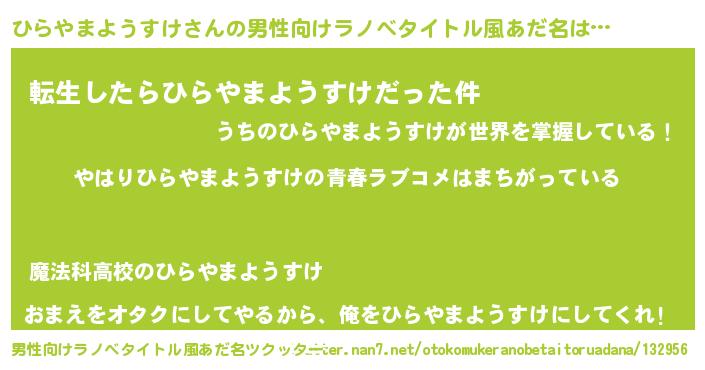 | 胡散臭い通販商品みたいなあだ名 | 『幸せが訪れる高級そうな壺…その名も「ひらやまようすけ」』 |