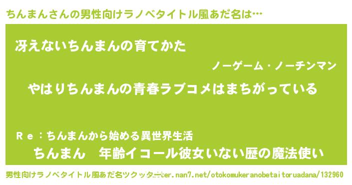 | 女子向けラノベタイトル風あだ名 | 『ちんまんの雑貨屋さん』 |