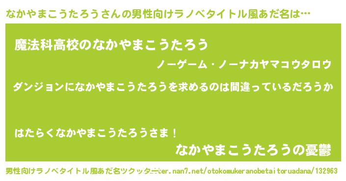 | 伝説のあだ名 | 『孤高の遊び人なかやまこうたろう』 |