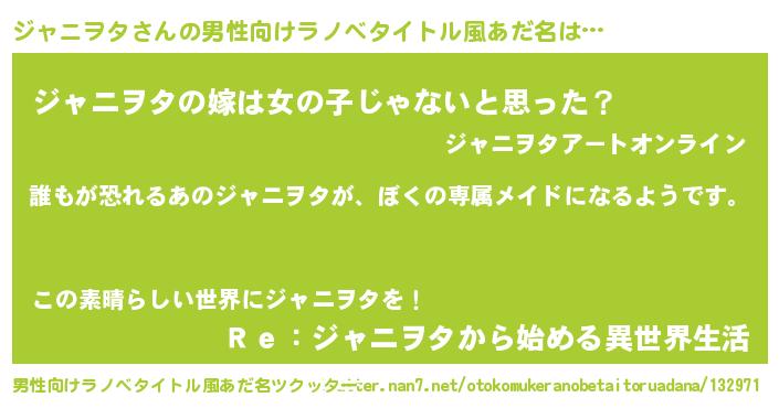 | 胡散臭い通販商品みたいなあだ名 | 『来世でも幸せになれる招き猫…その名も「ジャニヲタ」』 |
