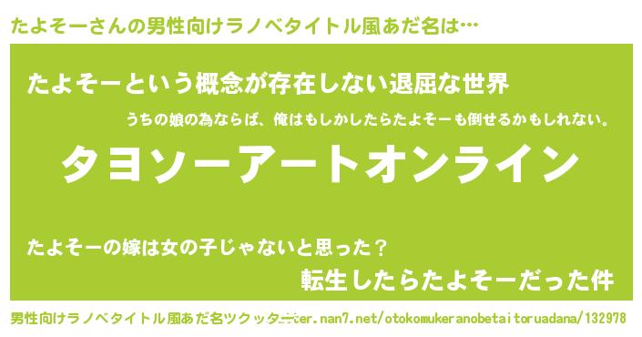 | 胡散臭い通販商品みたいなあだ名 | 『モテモテ間違いなし霊験あらたかなお札…その名も「たよそー」』 |