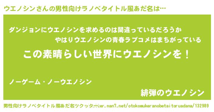 | 女子向けラノベタイトル風あだ名 | 『乙女ゲームの破滅フラグしかない悪役ウエノシンに転生してしまった…』 |