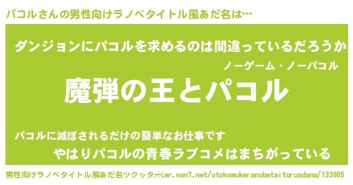 | 女子向けラノベタイトル風あだ名 | 『パコルが死なない童話 林檎のパコルの診療簿』 |