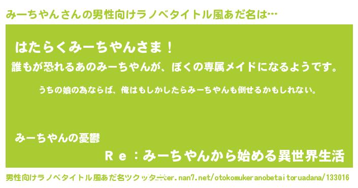| 女子向けラノベタイトル風あだ名 | 『みーちやんの婚約者』『闇のみーちやん』 |