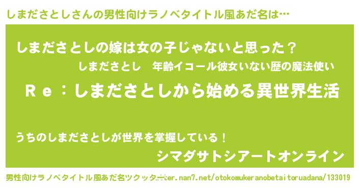 | 意味不明あだ名 | 『自称しまださとし』 |