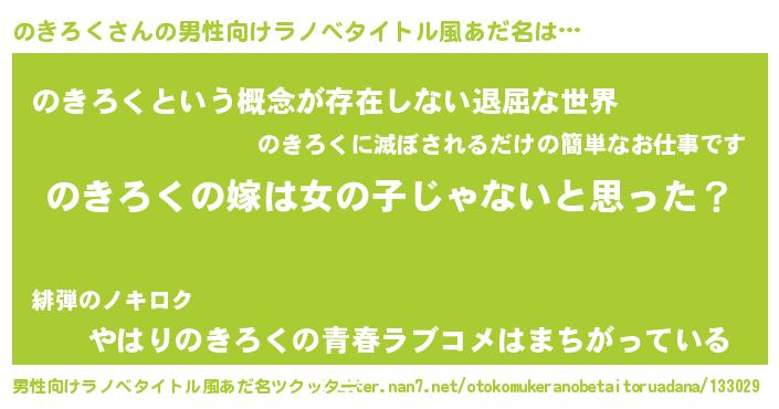 | 女子向けラノベタイトル風あだ名 | 『のきろく様がみてる』 |