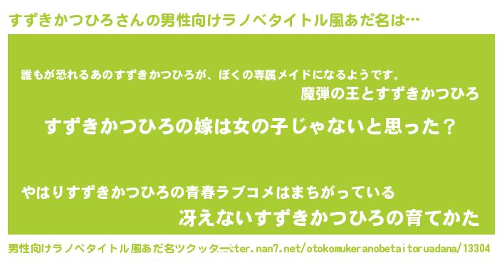 | 胡散臭い通販商品みたいなあだ名 | 『全米が絶賛したサプリメント…その名も「すずきかつひろ」』 |