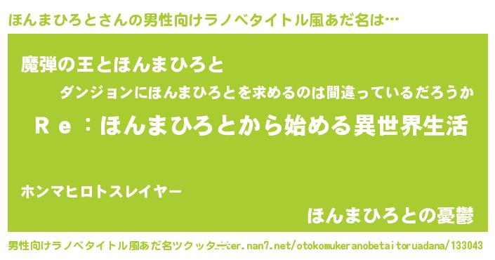 | 女子向けラノベタイトル風あだ名 | 『ほんまひろとストレイドッグス』 |