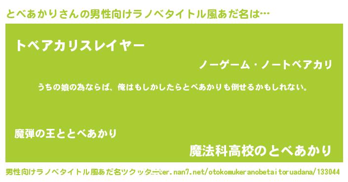 | 女子向けラノベタイトル風あだ名 | 『とべあかりの婚約者』 |
