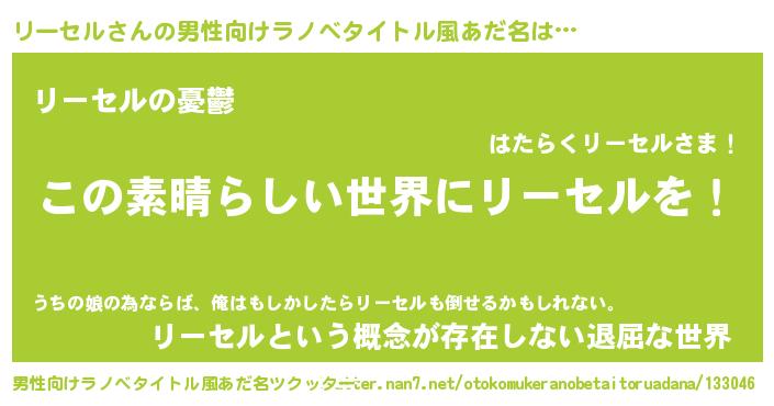 | 胡散臭い通販商品みたいなあだ名 | 『あなたにだけ特別に提供する100年もののヴィンテージワイン…その名も「リーセル」』 |